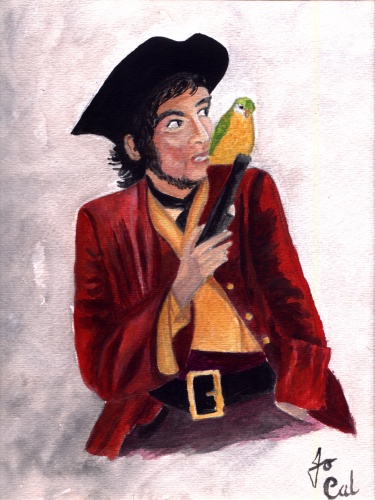 "Hi, fans! I am an artist and belong to the North Shore Art League here on Long Island. With all that I've painted, I never painted a pirate! This portrait is for my daughter, Lorraine Crennan, of her favorite pirate actor, Robert Newton, and for everyone on the website to enjoy. Love to all, Jo Cal." (2007)